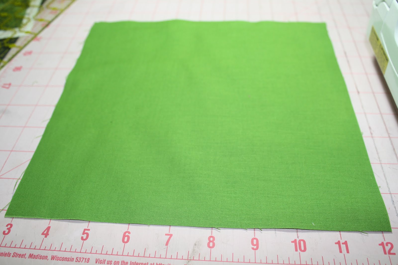 1) We need to cut some fabric! First, decide on the unfinished size block you want and cut your background fabric that size, in my case 9.5 inches.